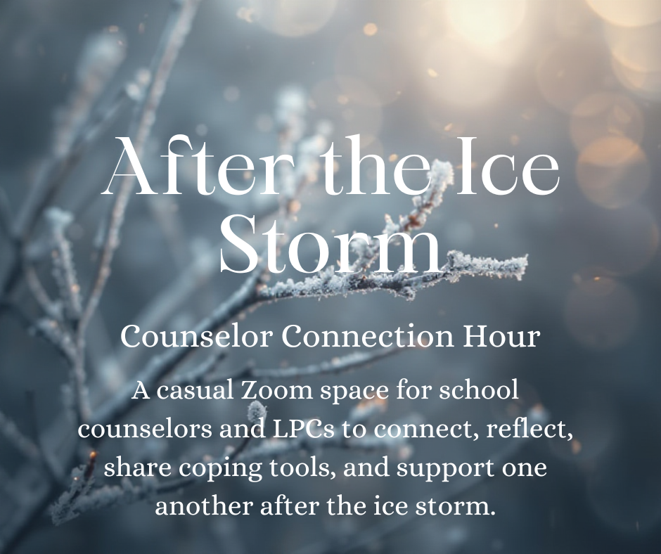 The Mississippi Counseling Association would like to reach out to counselors in the weather affected areas to provide support. There will be a Counselor Connection Hour on Wednesday, February 11, 2026, at 9:00 a.m., to allow counselors a time to discuss what might be needed to work with their students in their areas. This is a casual zoom space for school counselors and LPCs to connect, reflect, share coping tools, and support one another after the ice storm. If you would like to participate in the call, complete the form listed below. A zoom link will be sent after registration has been completed and prior to the call.